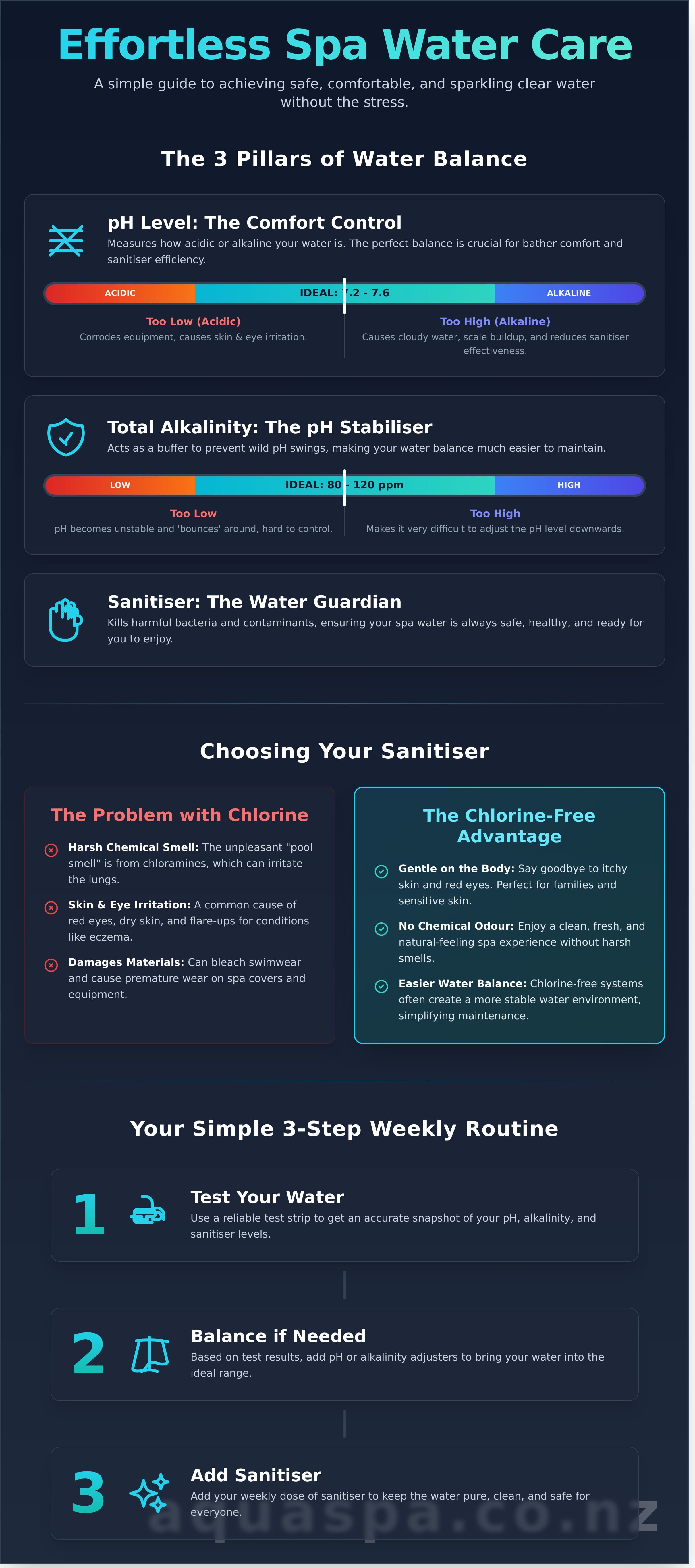 Owning a pool or spa should be about relaxation, not a complicated chemistry test. Yet, for many Kiwi owners, the reality involves staring at confusing test strips and feeling completely overwhelmed. Words like 'pH balance' and 'total alkalinity' can feel intimidating, and the worry of getting it wrong-leading to cloudy water or using harsh sanitisers that irritate the skin-is very real.